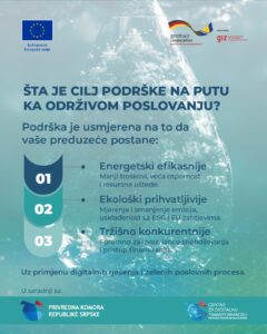 Под слоганом “Подршка на путу ка одрживом пословању”, циљ ове услуге је да усмјери предузећа ка енергетски ефикаснијем, еколошки прихватљивијем и тржишно конкурентнијем пословању уз примјену дигиталних рјешења и зелених пословних процеса.